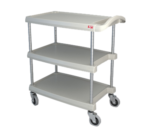 myCart™ Series Utility Cart, (3) shelves, open base, 31-1/2"W x 18-5/16"D x 35-1/2"H, heavy duty plastic shelf, with (4) swivel/resilient tread casters, 3-shelf cart has a 400 lb. capacity per unit, gray, NSF