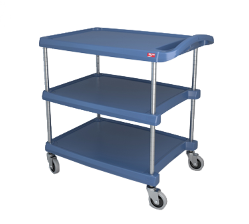 myCart™ Series Utility Cart, (3) shelves, open base, 34-3/8"W x 23-7/16"D x 35-1/2"H , heavy duty plastic shelf, with Microban® antimicrobial product protection, with (4) swivel/resilient tread casters, (3) shelves cart has a 400 lb. capacity per unit, blue, NSF