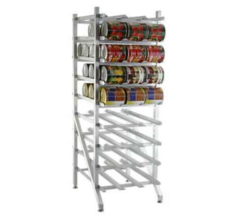 Can Storage Rack, stationary design with adjustable feet, sloped glides for automatic can retrieval, aluminum construction, holds (162) #10 cans or (216) #5 cans, NSF, Made in USA
