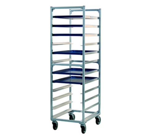 Bun Pan Rack, mobile, full height, end loading, open sides, accommodates (12) 18" x 26" pans, slides on 5" centers, all welded aluminum construction, (4) 5" platform casters, NSF, Made in USA