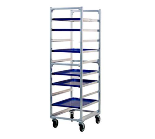 Bun Pan Rack, mobile, full height, (10) 18" x 26" pan capacity, slides on 6" centers, end loading, open sides, all welded aluminum construction, (4) 5" platform casters, NSF, Made in USA