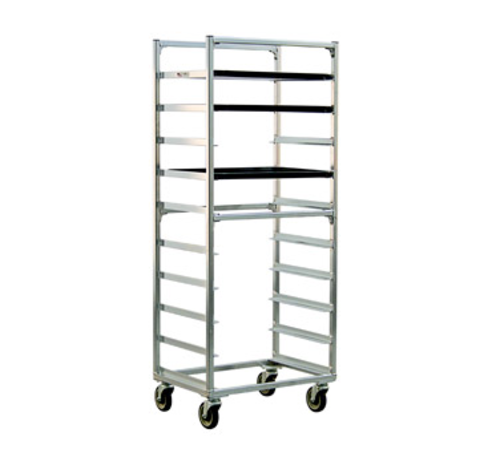 Bun Pan Rack, mobile, full height, (10) 18" x 26" pan capacity, slides on 6" centers, side loading, open sides, all welded aluminum construction, (4) 5" platform casters, NSF, Made in USA
