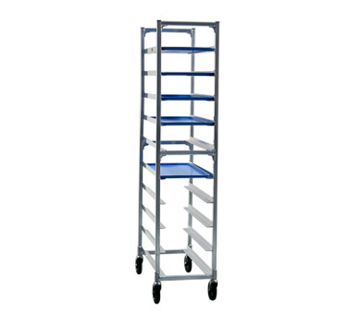 Platter Rack, mobile, full height, open sides, with slides for 12" x 30" platters, slides on approximately 6" centers, angle-type, end loading, all welded aluminum construction, (4) 5" stem casters, NSF, Made in USA
