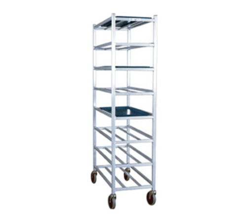Platter Rack, mobile, universal, open frame design, (8) shelves for 10" x 30" or 12" x 30" platters, approximately 7-1/4" centers, end loading, all welded aluminum construction, (4) 5" stem swivel casters, NSF, Made in USA