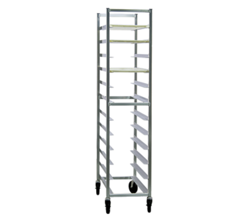Platter Rack, mobile, full height, open sides, with angle guides on 5" centers, accommodates up to (12) 12"x30" platters, all-welded aluminum construction, end loading, 5" stem casters, NSF, Made in USA