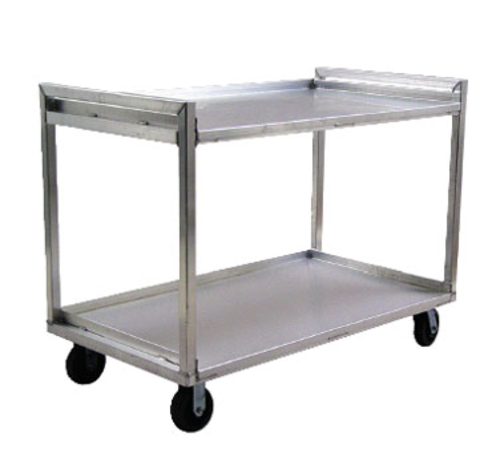 Correctional Utility Cart, 29"W x 41"H x 37"D (2) open shelves, welded aluminum construction, (4) 6" heavy duty polyurethane platform casters (2) swivel (2) rigid, 1500 lbs. capacity per shelf (2000 lbs. rolling capacity), Made in USA