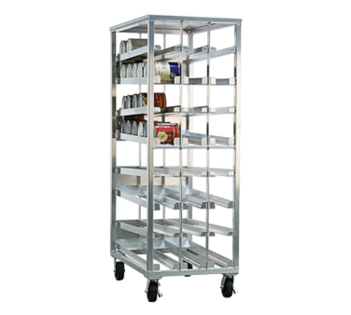 First In, First Out Can Rack, mobile, with sloped glides for automatic can retrieval, holds (156) #10 cans, front edge turned up, welded alloy construction, 6" platform casters (2) swivel with brakes C495, 2 rigid C500, Made in USA
