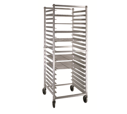 Donut Screen Rack, mobile, full height, open sides, with slides for (20) 23" x 23" donut screen, 3" spacing, end loading, 5" stem casters, NSF, KD, Made in USA