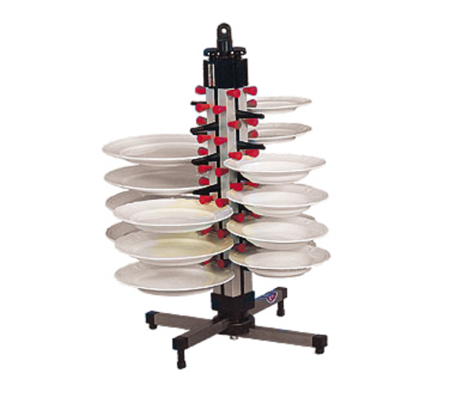 Plate Rack, table top, holds (24) plates, suspension eye, plate tree column, adjustable arms, cross base, adjustable feet
