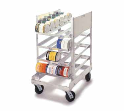 Can Rack, mobile, 25"W x 48"H x 36"D, inclined extended guides, holds (72) #10 or (96) #5 cans, removable shelves, heavy duty non-rustable extruded aluminum construction, KD, NSF (UPS shippable)