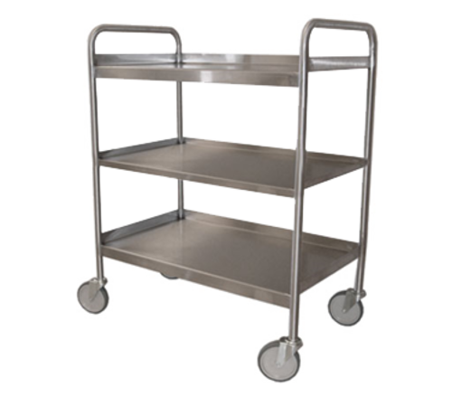 Utility Cart, (3) 16-gauge shelves, all welded, 19"W x 42"H x 31"L, easy grip tube handle, 1-1/2" (3) sided splash guard, 300 series stainless steel construction, casters, NSF, Made in USA (ships LTL)