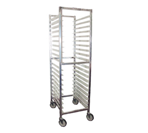 W-Series Pan Rack, mobile, all welded, full height, open sides, guides on 3" centers, capacity (20) 18" x 26" pans, heavy duty non-rustable aluminum construction, end loading, 20-1/4"W x 71-1/2"H x 25"D, swivel casters, NSF, Made in USA (ships LTL)