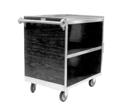 Deluxe Bussing/Pacemaker Cart, standard duty, 18" x 28" x 36-3/16"H, enclosed on three sides, (3) 16" x 24" shelves, 500 lb. capacity, legs and push handle bumpers, stainless steel construction, 5" deluxe all swivel casters, NSF (contact factory for price)