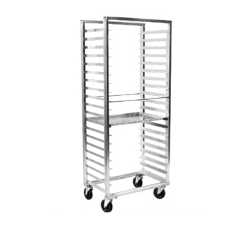 Pan Rack, mobile, standard duty, 64-3/16" high, (18) 18" x 26" pan capacity, 3" spacing, angle ledge, side loading, aluminum construction, 5" casters, fully assembled