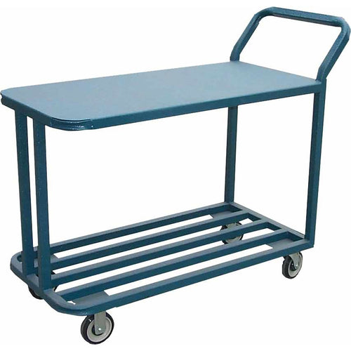 Kelmax Low Stock Cart, single platform, 51"W x 18"D, standard retractable shelf & storage box, heavy duty steel construction powder coated brown, (6) 5" x 2" plate casters, 1500 lb. load capacity