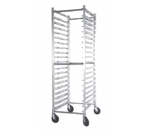 Kelmax Pan Rack, mobile, full height, medium duty, (12) 18" x 26" pan capacity, slides on 5" centers, end loading, round top, welded aluminum construction, 5" standard duty casters, NSF