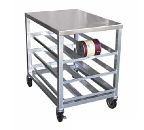 Kelmax Can Storage Rack, half size, mobile design, with aluminum top, self feeding gravity fed shelves, holds both #10 & #5 cans, all welded extruded aluminum construction, 72 can capacity, 42"H, 5" plate casters (2 swivel with brake, 2 rigid), NSF