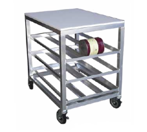 Kelmax Can Storage Rack, half size, mobile design, with poly top, self feeding gravity fed shelves, holds both #10 & #5 cans, all welded extruded aluminum construction, 72 can capacity, 42"H, 5" plate casters (2 swivel with brake, 2 rigid), NSF