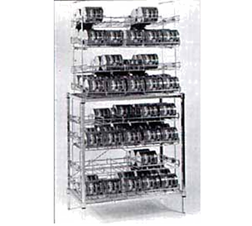 Amco Take 10® Can Rack, four modules, 21" x 42" x 82-1/2", one stationary base with two shelves, designed for number 10 cans, 120 can capacity