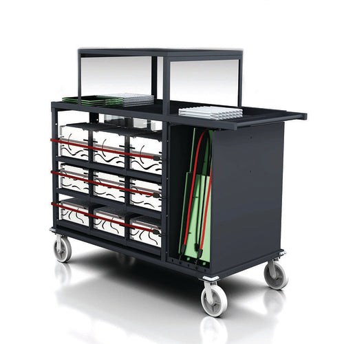 Transport Cart, 72"L x 34"W x 61"H, large, for Fusion & Wave Risers, (5) adjustable shelves, (10) shelf rails, (10) 7" plastic dividers, (20) plastic clips (for dividers) (10) adjustable bungee cords, steel, textured black powder coating, Fusion Buffet Sy