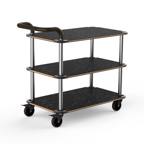 Mogogo Buffet Solutions Roll'n Service Cart, 41-1/2" x 21" x 36"H, multi-purpose, (3) Nero Marquina marble BHP shelves, push handle, stainless steel frame, brushed stainless steel finish, heavy duty casters, knockdown
