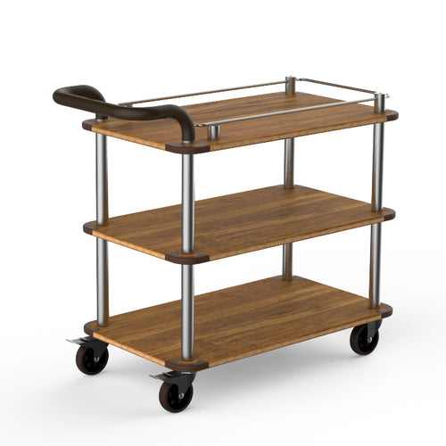 Mogogo Buffet Solutions Roll'n Service Cart, 41-1/2" x 21" x 36"H, multi-purpose, with border, (3) high density bamboo finish shelves, push handle, stainless steel frame, brushed finish, heavy duty casters, knockdown