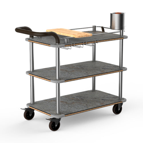 Mogogo Buffet Solutions Roll'n Mixology Service Cart, 41-1/2" x 21" x 40-1/2"H, multi-purpose, (3) grey slate BHP shelves, push handle, stainless steel frame, brushed stainless steel finish, heavy duty casters, knockdown