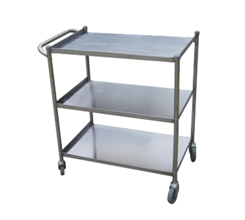 Utility Cart, 18" x 28", (3) shelves, (1) push/pull handle, 430 stainless steel, 4" rubber casters
