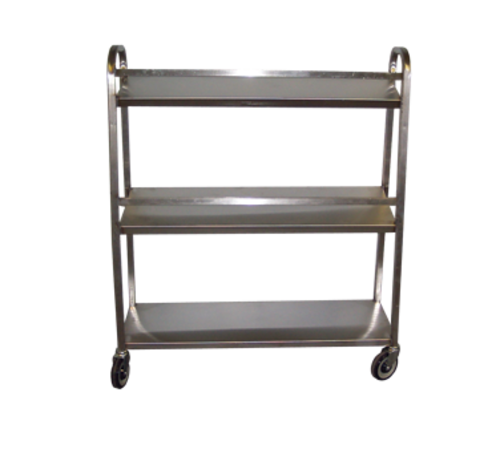 Icing Cart, 3-tier, 44"W x 15"D x 52"H, all-welded stainless steel construction, open base, (3) slanted shelves with stop-bars at front, 17-1/2" shelf clearance, 5" swivel stem casters with polyurethane tread, NSF