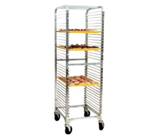 Mobile Pan Rack, full height, open sides, (36) 18" x 26" sheet pan capacity, chrome steel wire slides secured to aluminum frame, end loading, 5" stem casters, NSF