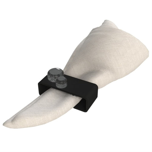 Napkin Holder Ring, 2-2/5" x 1" x 1-1/5"H, with clear glass beads, black metal, My Glass Studio