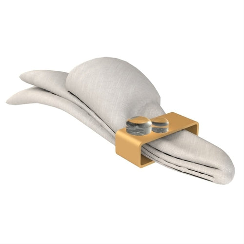Napkin Holder Ring, 2-2/5" x 1" x 1-1/5"H, with clear glass beads, gold metal, My Glass Studio