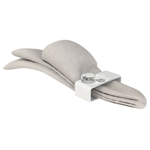 Napkin Holder Ring, 2-2/5" x 1" x 1-1/5"H, with clear glass beads, white metal, My Glass Studio