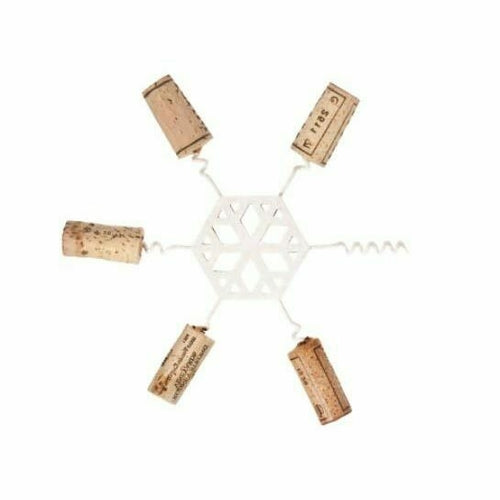Snowflake Wine Cork Trivet, 6-3/8" dia., snowflake shape, (6) spirals, stainless steel, enamel finish, white (corks not included), Made in Portugal (retail box)