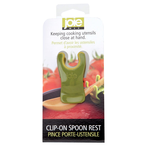 Joie Clip-On Spoon Rest, clips onto pots & pans to hold cooking utensils, assorted colors (priced per each, red, green & orange included in a master case, colors chosen at random upon shipment) (carded)