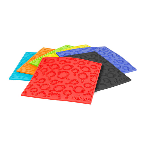 Trivet, 7", square, heat protection up to 500°F (surfaces) & 400°F (hands), raised skillet pattern, dishwasher safe, silicone, turquoise, BPA Free