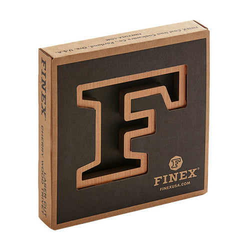 Finex® Trivet, 8", laser cut "F", wood, cherry, Made in USA (boxed)