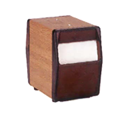 Napkin Dispenser, table type, (2) sided dispensing, 6-3/16"D x 4"W x 5-7/8"H, for napkins 3-1/2" x 5", transparent brown face, walnut
