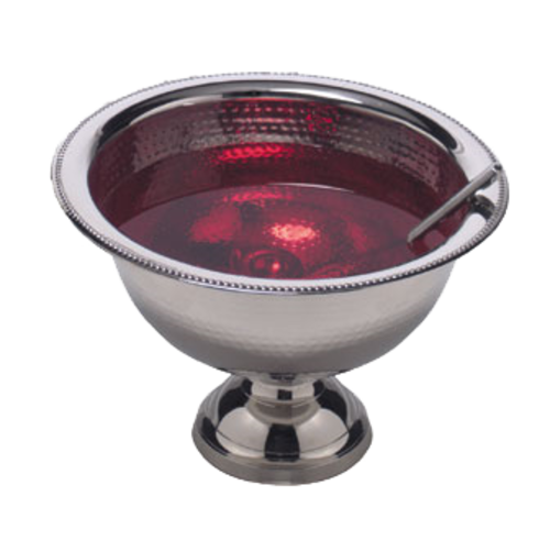 Punch Bowl, 8 qt., 17" dia. x 10-7/8"H, hammered, 18/8 stainless steel