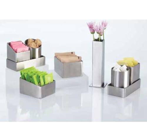 Sugar Packet/Cube Holder, 2" square x 2-3/4"H, angled, stainless steel, satin finish