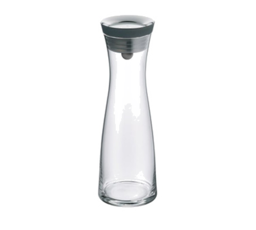 Water Decanter, 50.72 oz., 18/10 stainless steel close up lid with black ring, silicone stopper, glass, by WMF