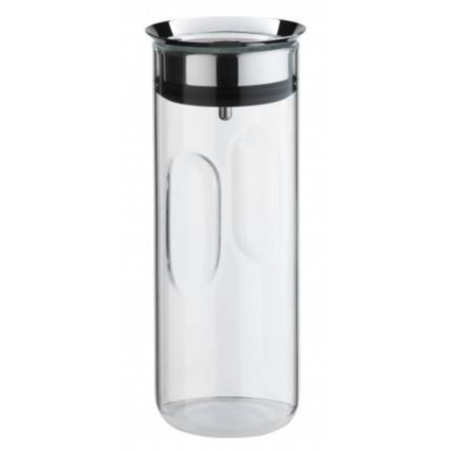 Water Decanter, 0.8 liter (27.1 oz.), 3-7/8" dia. x 9-7/16"H, heat resistant up to 130°C (266°F), Cromargan® 18/10 stainless steel CloseUp lid, silicone stopper, dishwasher safe, glass, Motion by WMF