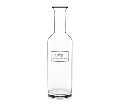 Wine Serving Bottle, 25-1/4 oz. (26.75 oz. brimful), 3-1/4" dia. x 11-1/2"H, embossed with CE gauge mark reflecting 3/4 liter capacity, safe edge rim, glass, Optima® by Luigi Bormioli