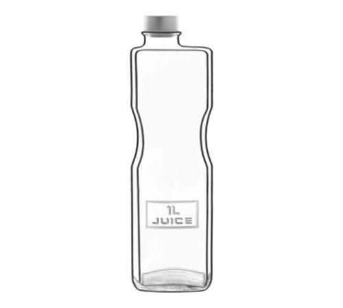 Juice Serving Bottle, 1 liter (34 oz.) (35.25 oz. brimful), 3-1/4" dia. x 10-5/8"H, includes cap, embossed with CE gauge mark reflecting 1 liter capacity, safe edge rim, glass, Optima® by Luigi Bormioli