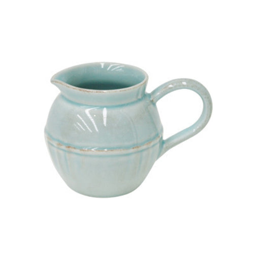 Creamer, 14 oz., 5-1/4"L x 4"L x 3-3/4"H, round, with handle, heat & chill retention, oven/microwave/freezer/dishwasher safe, thermal shock/chip/stain-resistant, vitrified, strong glaze finish, fine stoneware, Alentejo Collection, turquoise