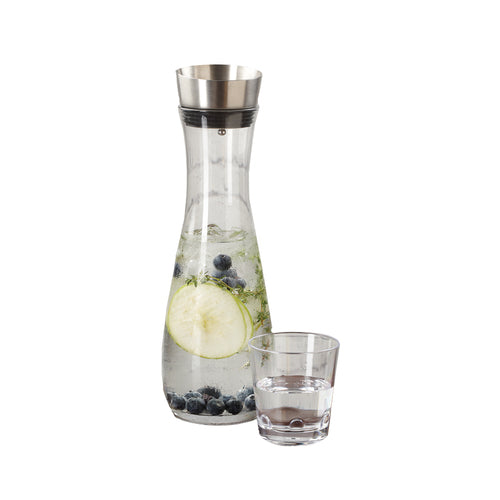 Silhouette™ Glass Decanter, 40 oz. (41 oz. rim full), 4-1/2" dia. x 12-1/2"H, stainless steel dripless lid, glass, clear