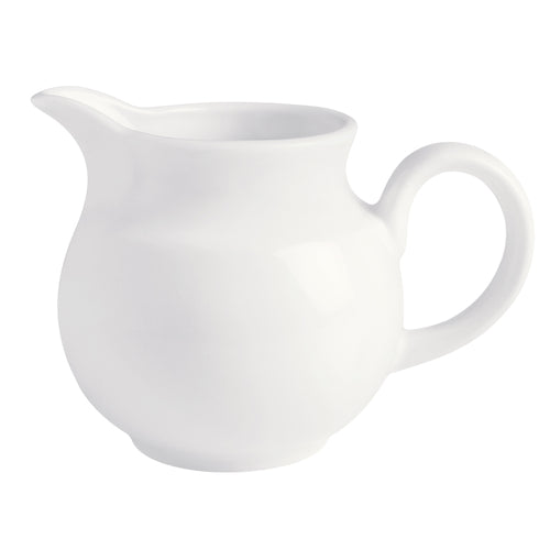 Jug, 8.8 oz., small, rolled edge, with handle, scratch/chip resistant, microwave, dishwasher & oven safe up to 380°F, porcelain, Corona, Actualite, bright white (Stocked Item)