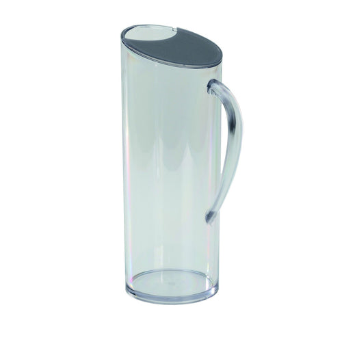 Frilich® Muesli Flute, 50.7 oz. (1.5 liter), 5-3/10" x 4-1/10" x 10-4/5"H, with handle & grey lid with spoon cut-out, plastic, clear (fits XB560E, XB561E) (special order, contact G.E.T. for lead time & minimum order quantity)