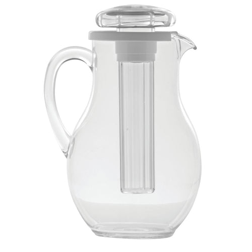 Pitcher, 3 liter, 7-1/2" x 6-1/2" x 11-1/4"H, smooth, with ice tube, SAN, clear