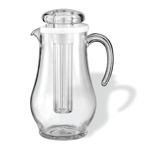 Water Pitcher, 1.9 liter (64.2 oz.), 6" x 6-3/4" x 10-1/2", with ice tube, smooth surface, hand wash, BPA free, SAN plastic, clear (Priced per each, packed 6 each per case)